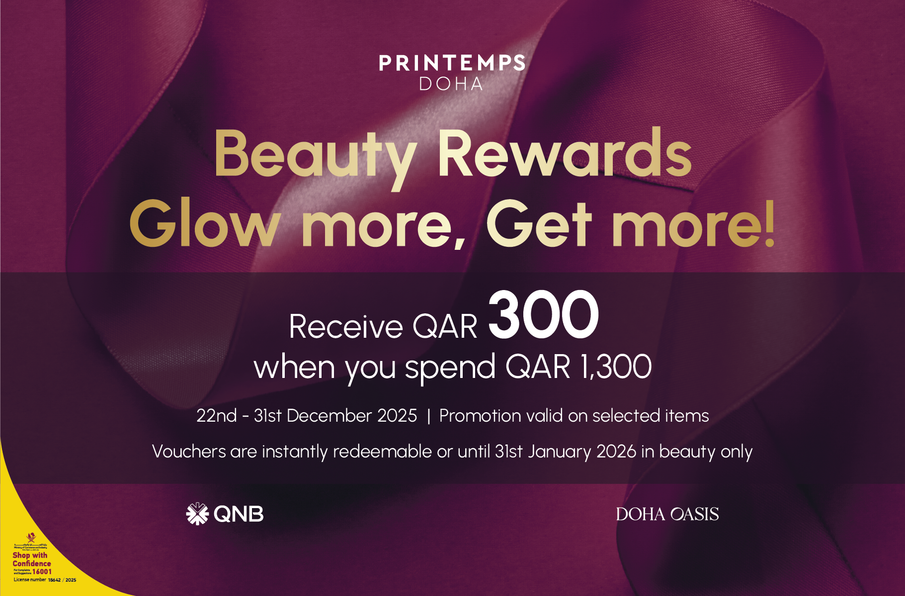 More beauty. More glow. More rewards. Spend QAR 1,300 in Beauty and